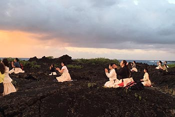 Kumu Kekuhi Kealy Kanaka'oleの師事のもとハワイ島キラウエア火山に2回目の奉納